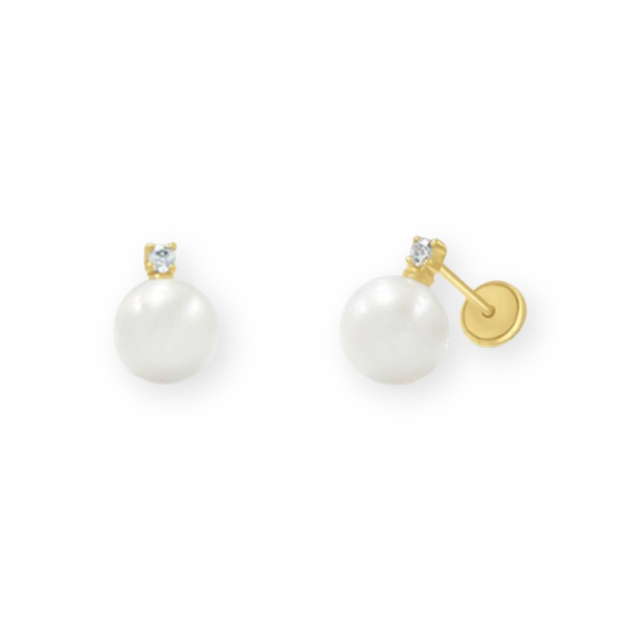 Par de aros en Oro Amarillo con Perla y Circón