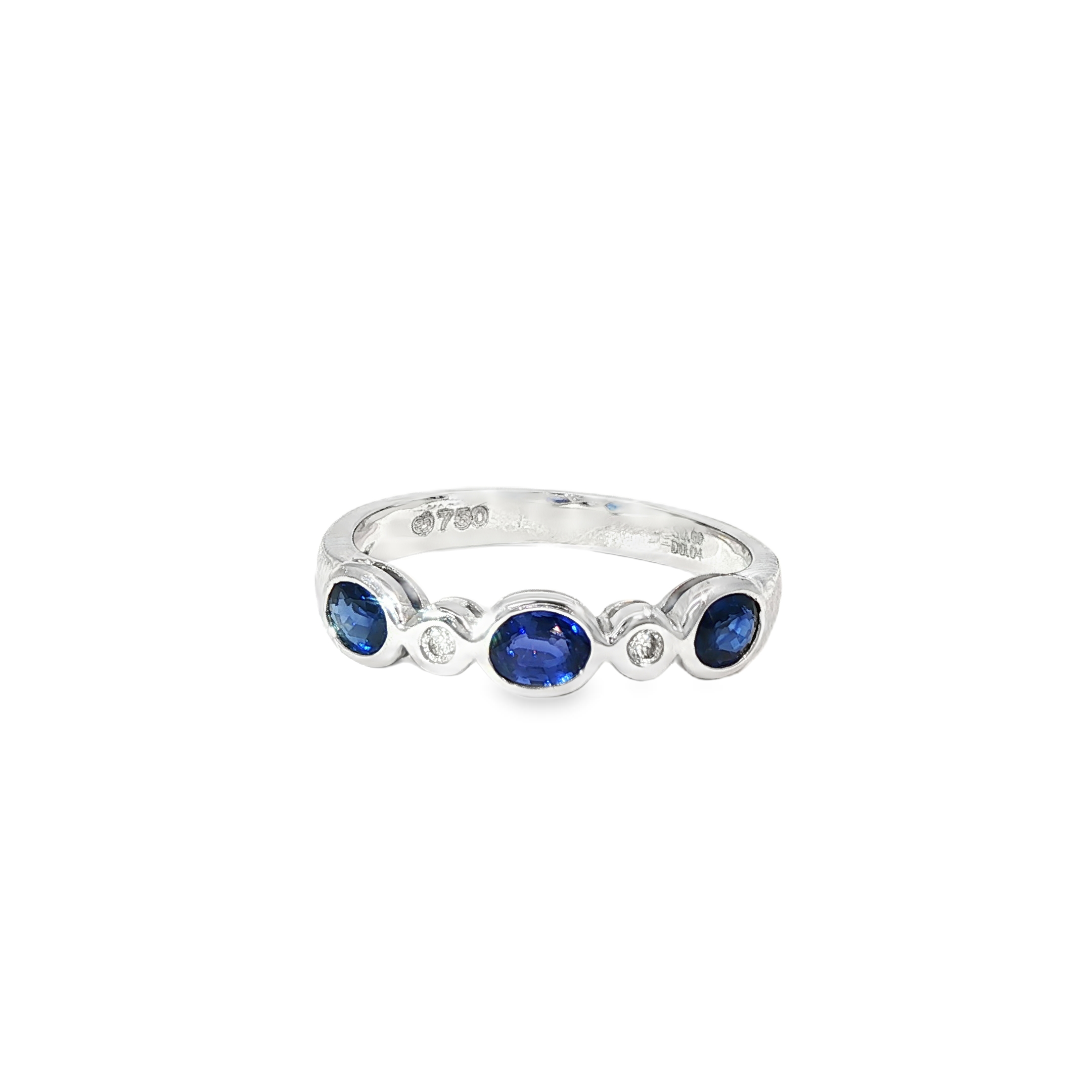 Anillo Oro Blanco Zafiro Azul y Diamantes