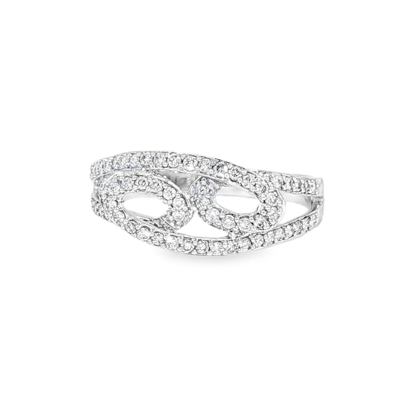 Este deslumbrante anillo multi piedra, confeccionado en oro blanco, exhibe una composición armoniosa de diamantes corte brillante. El engaste meticuloso potencia el brillo excepcional de cada diamante, creando una joya sofisticada y elegante, ideal para ocasiones especiales.