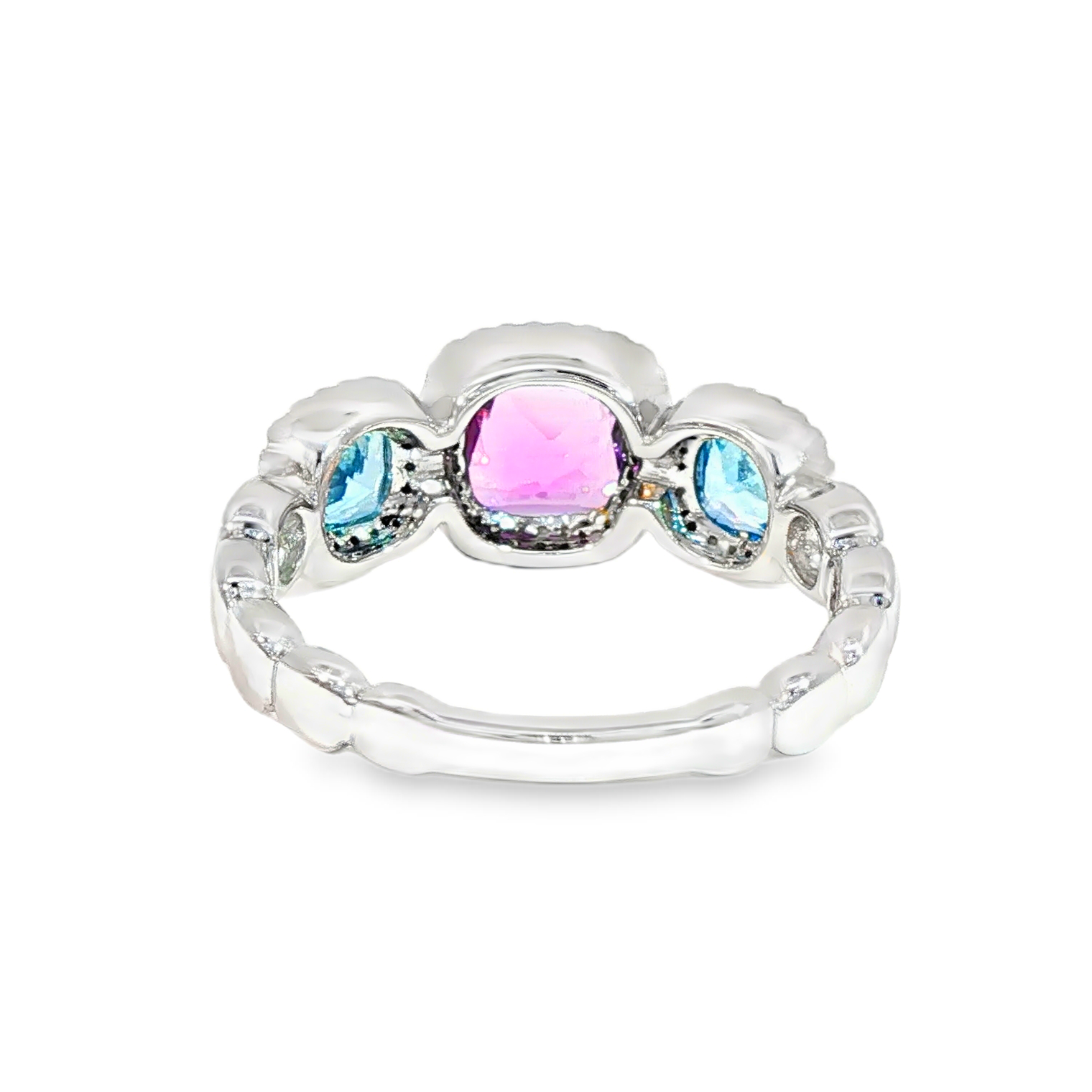 Anillo Oro Blanco Amatista Topacio Diamante