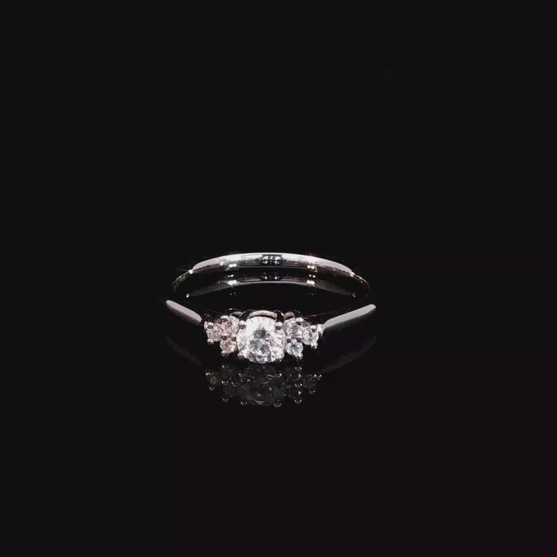 Anillo diseño Tricillo en platino, una joya de elegancia atemporal. El diseño presenta un diamante central (Certificado IGI) de corte brillante, complementado por delicados diamantes laterales que realzan su brillo.