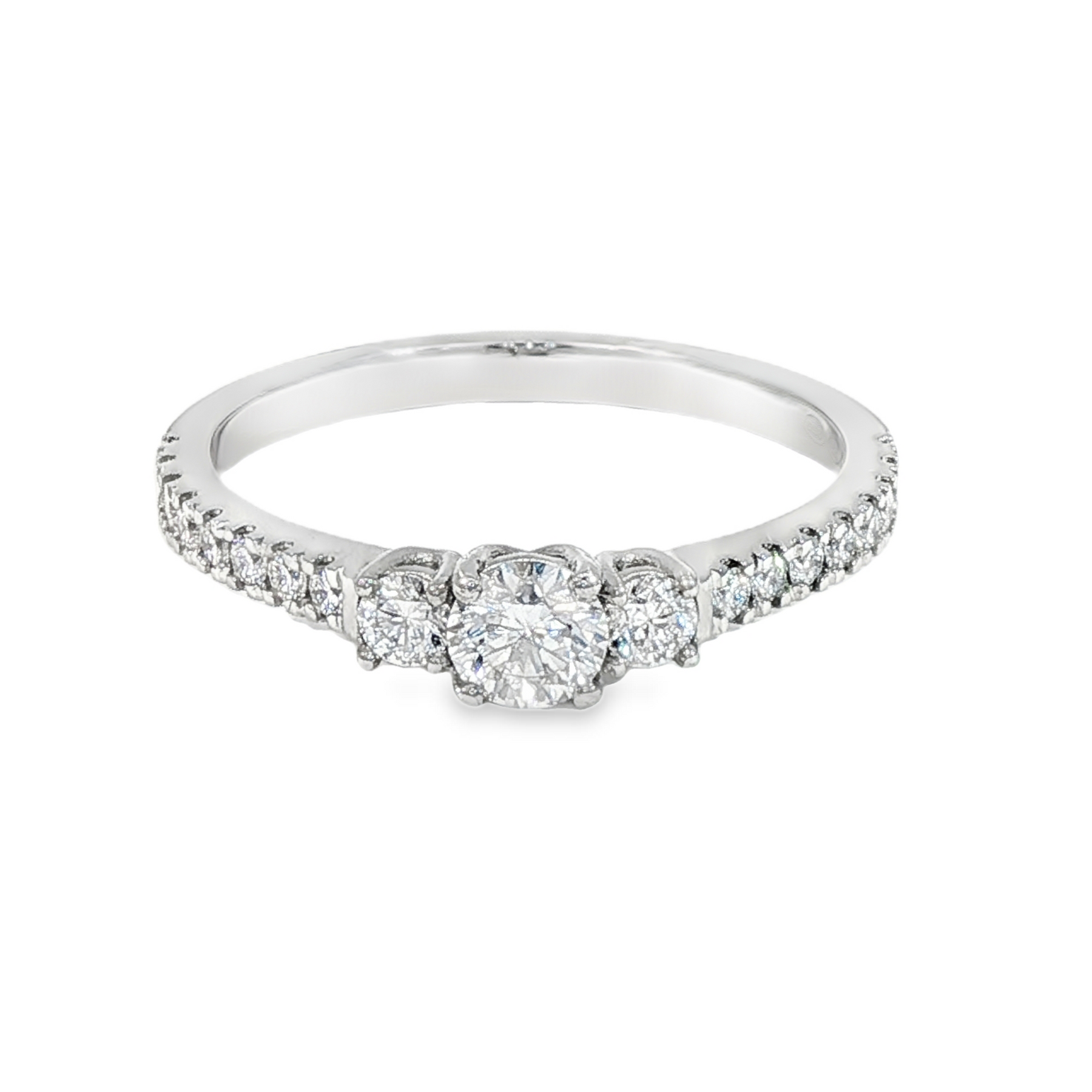 Anillo tricillo medio Cintillo en platino y 0.57ct de Diamantes naturales. La composición diamantes de corte brillante realza su belleza y brillo único. El diamante central esta certificado por IGI.