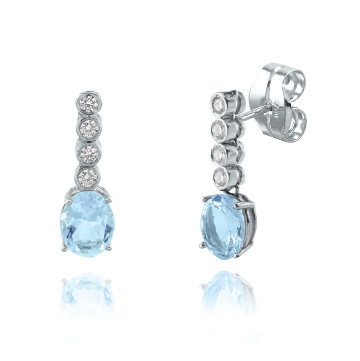 Par de aros colgante Oro Blanco 18 K con Diamantes y Aguamarinas