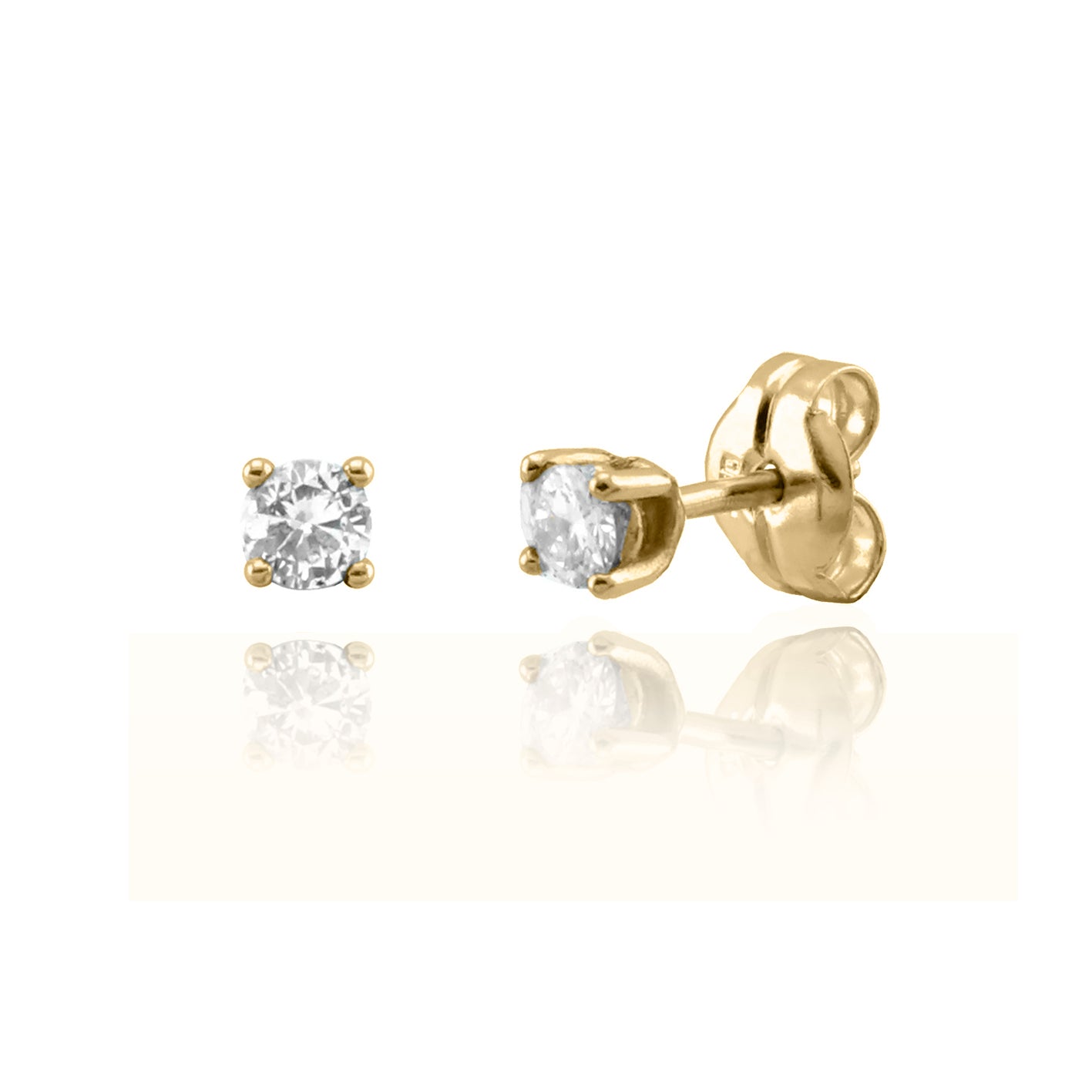 Par de aros Tope Oro amarillo 18 Kilates con Diamante