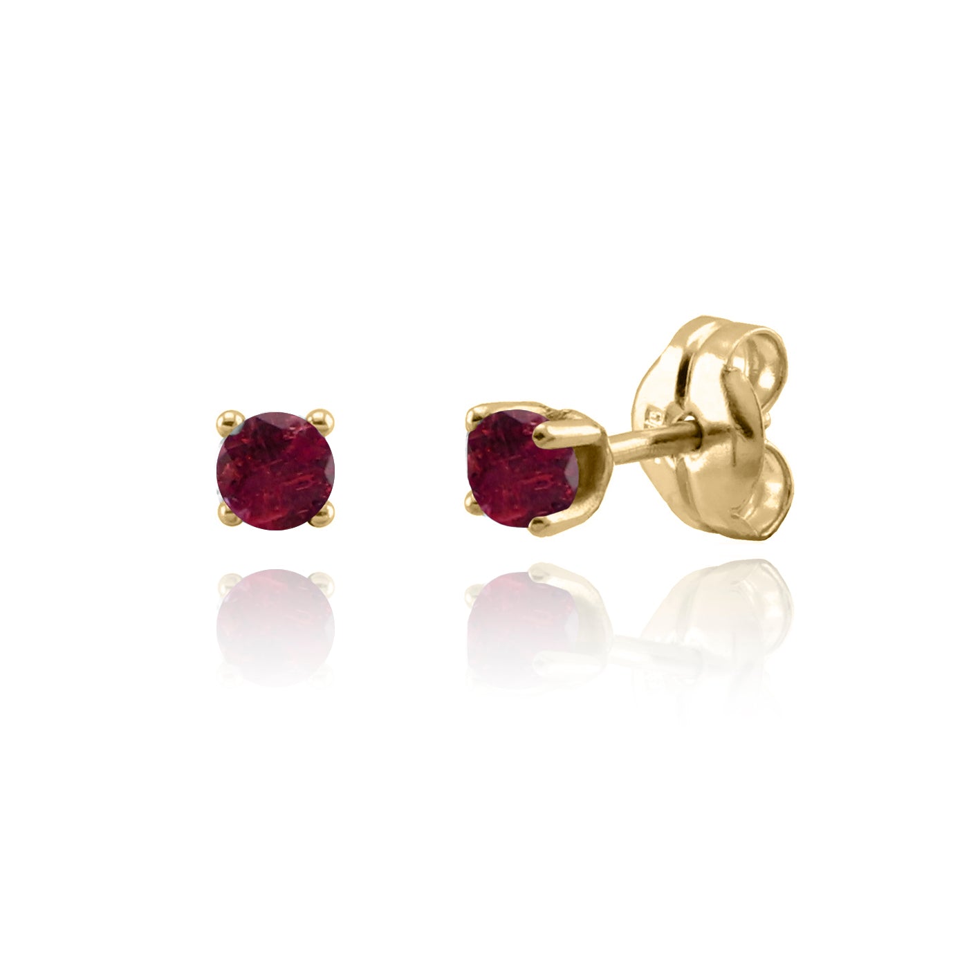 Par de aros Tope Oro amarillo 18 Kilates con Rubí