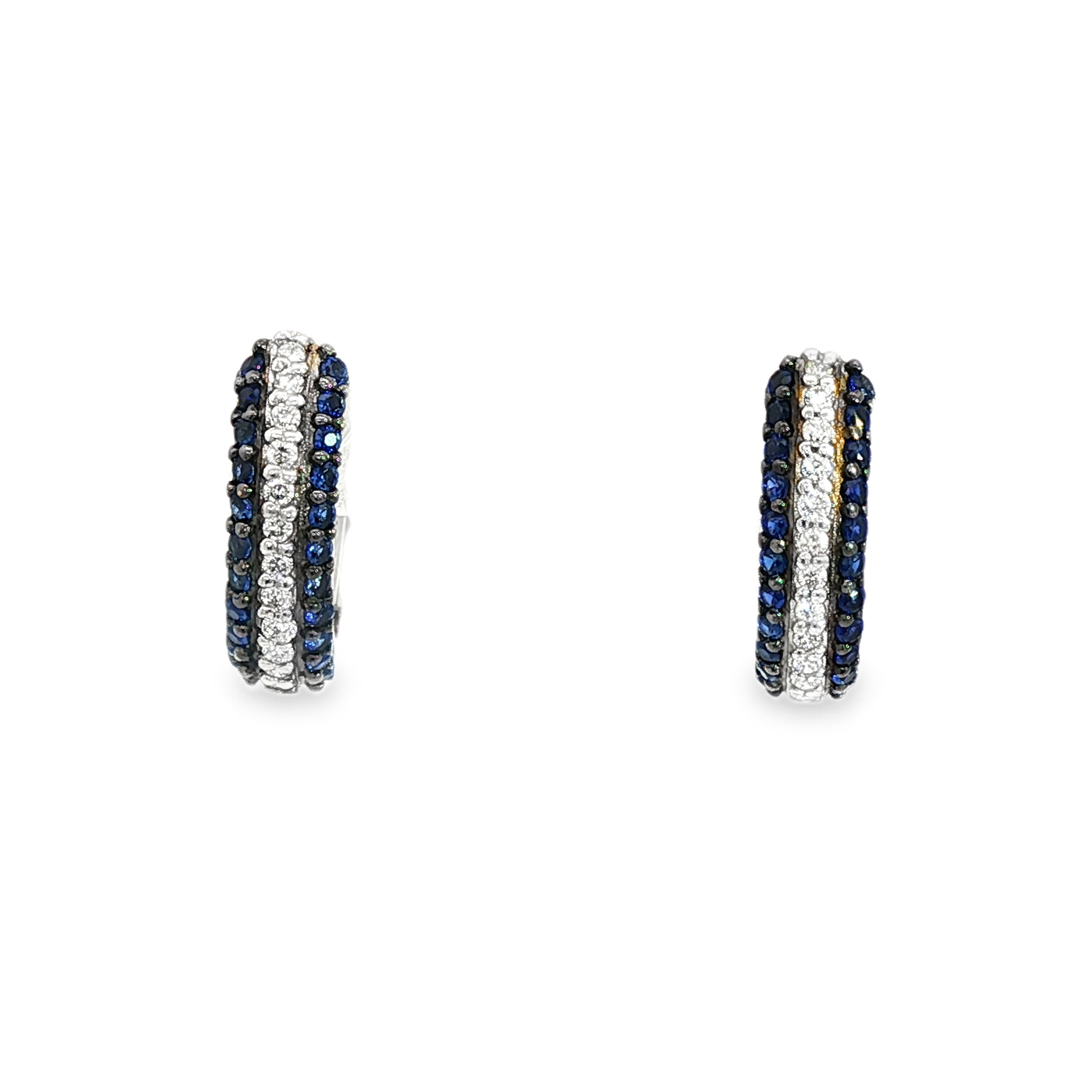 Par de Aros Argolla Oro Blanco 18K Zafiro y Diamantes