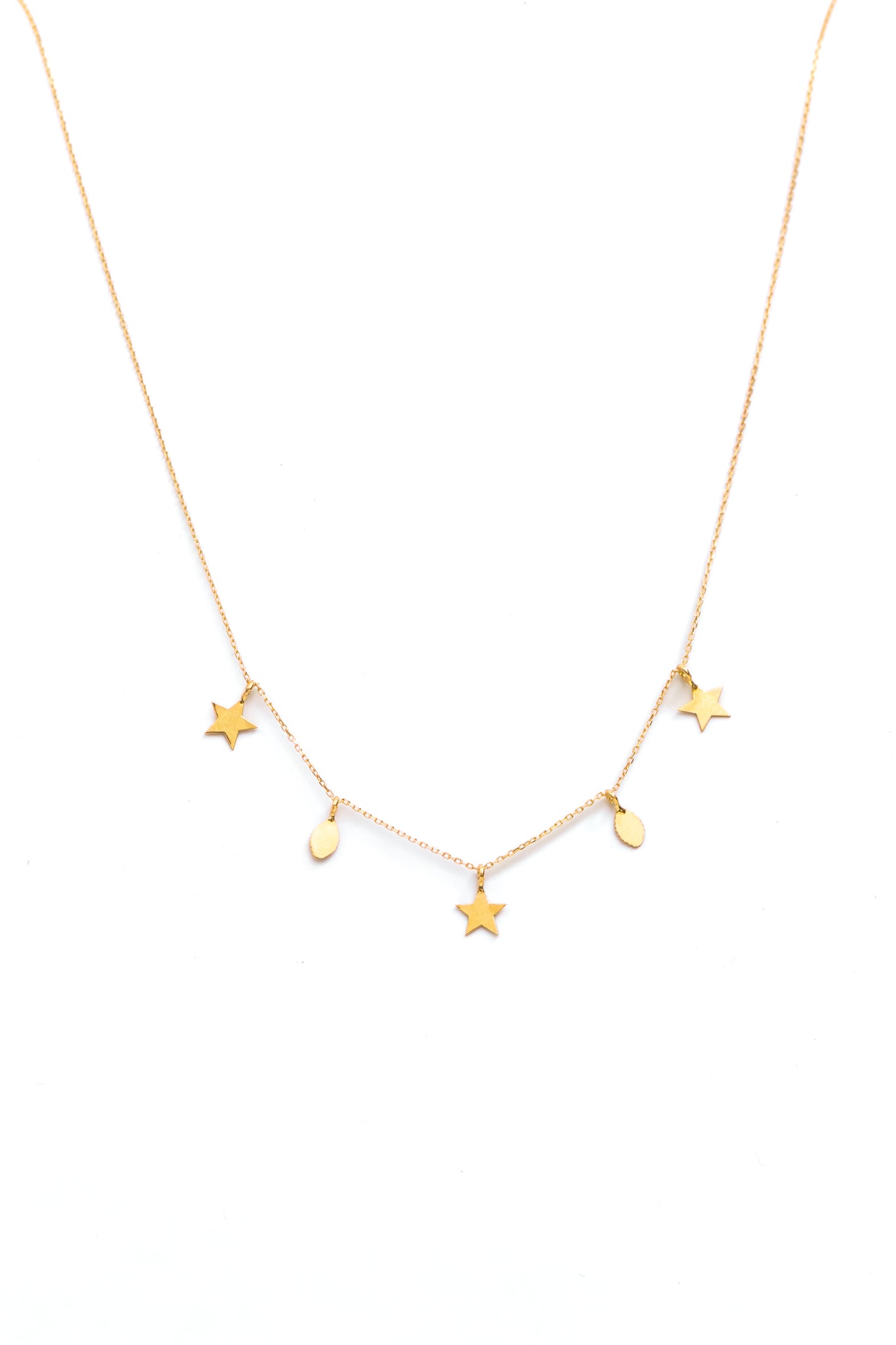 Este collar combina la belleza del oro de 18 kilates con un diseño encantador de estrellas, creando una pieza que captura la luz con cada movimiento. La calidez del oro amarillo resalta la belleza natural de quien lo lleva, añadiendo un toque de lujo y sofisticación a cualquier conjunto. Con una longitud perfecta para lucirlo solo o para combinarlo con otros collares, este collar es la opción ideal para añadir un toque de brillo a tu estilo diario.