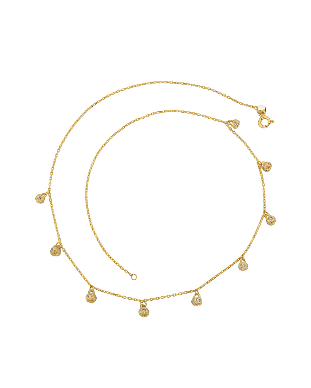 Un diseño delicado y atemporal. Este collar combina la calidez del oro amarillo 18K con pequeñas bolitas de oro con circon dentro, creando un contraste sutil y elegante. Su formato liviano y ajustable lo hace ideal para usar solo o combinar con otras cadenas.
