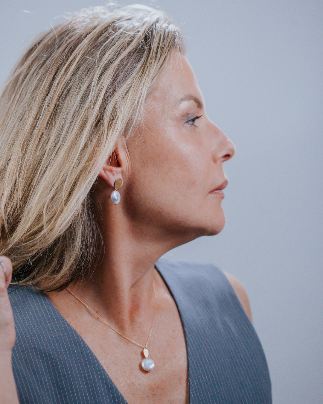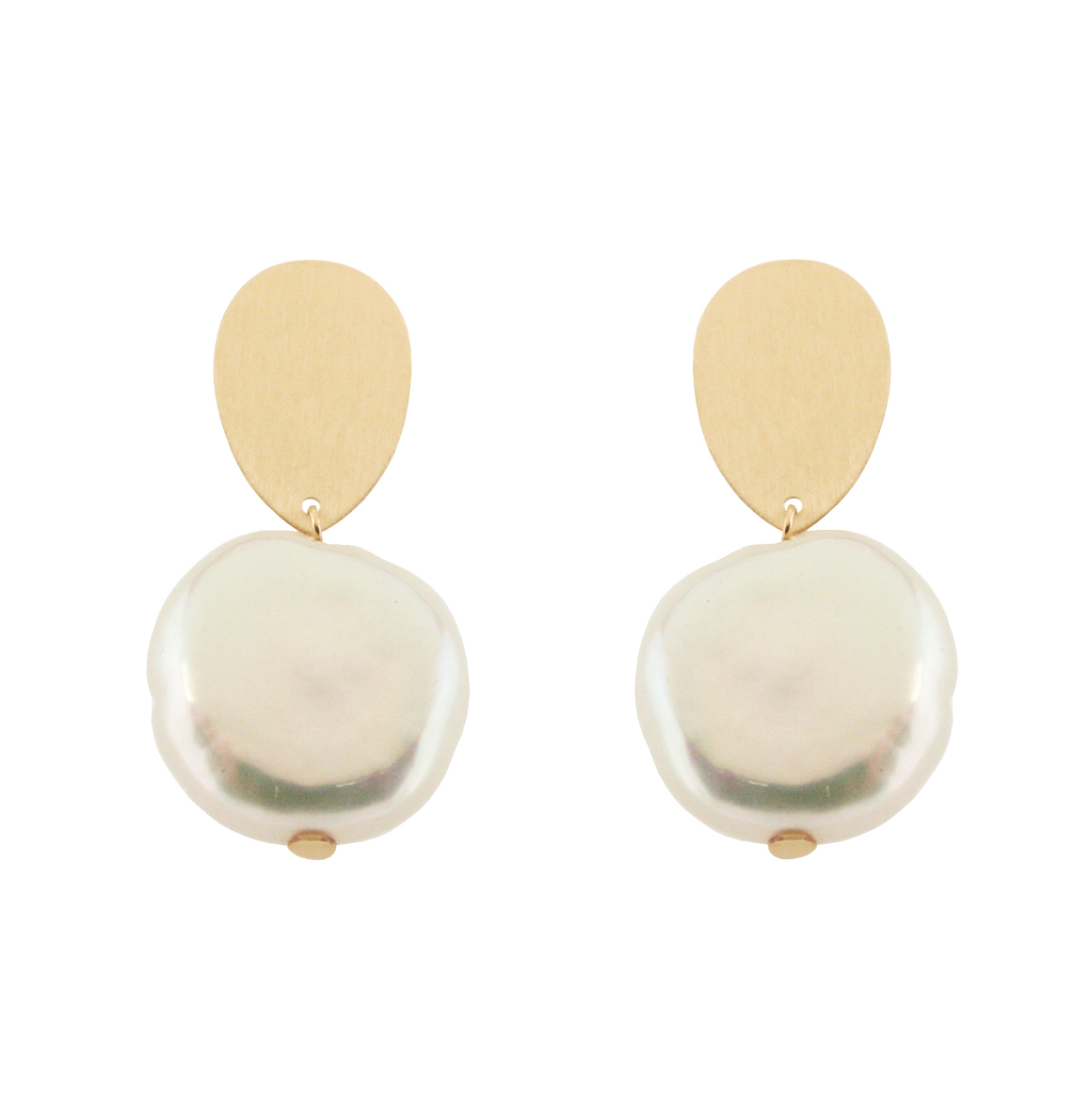 Aros con pieza oro amarillo 18 K en forma de gota y perla barroca natural. Un diseño elegante y versátil que aporta un toque sofisticado a cualquier look, manteniendo la belleza orgánica de cada perla.